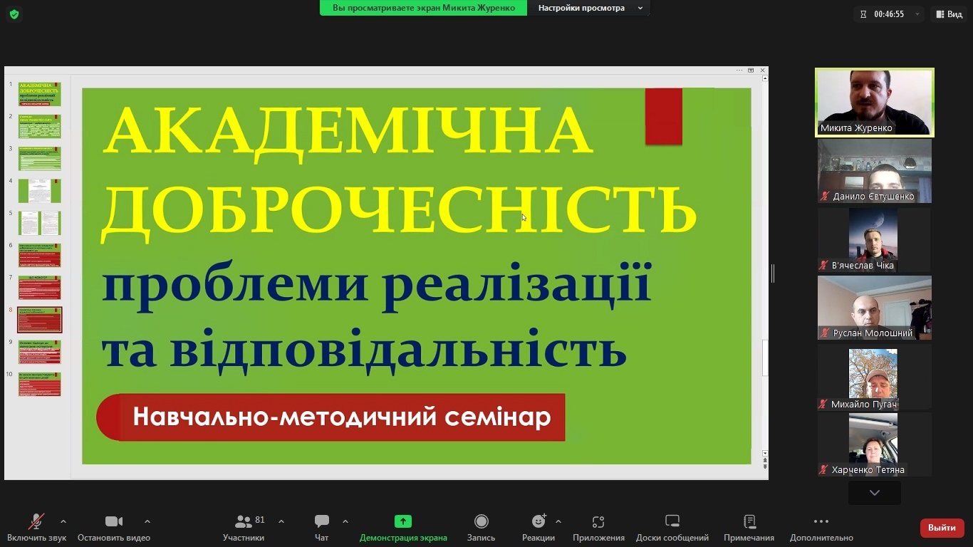 Навчально-методичний семінар: «Академічна доброчесність. Проблеми реалізації та відповідальність»