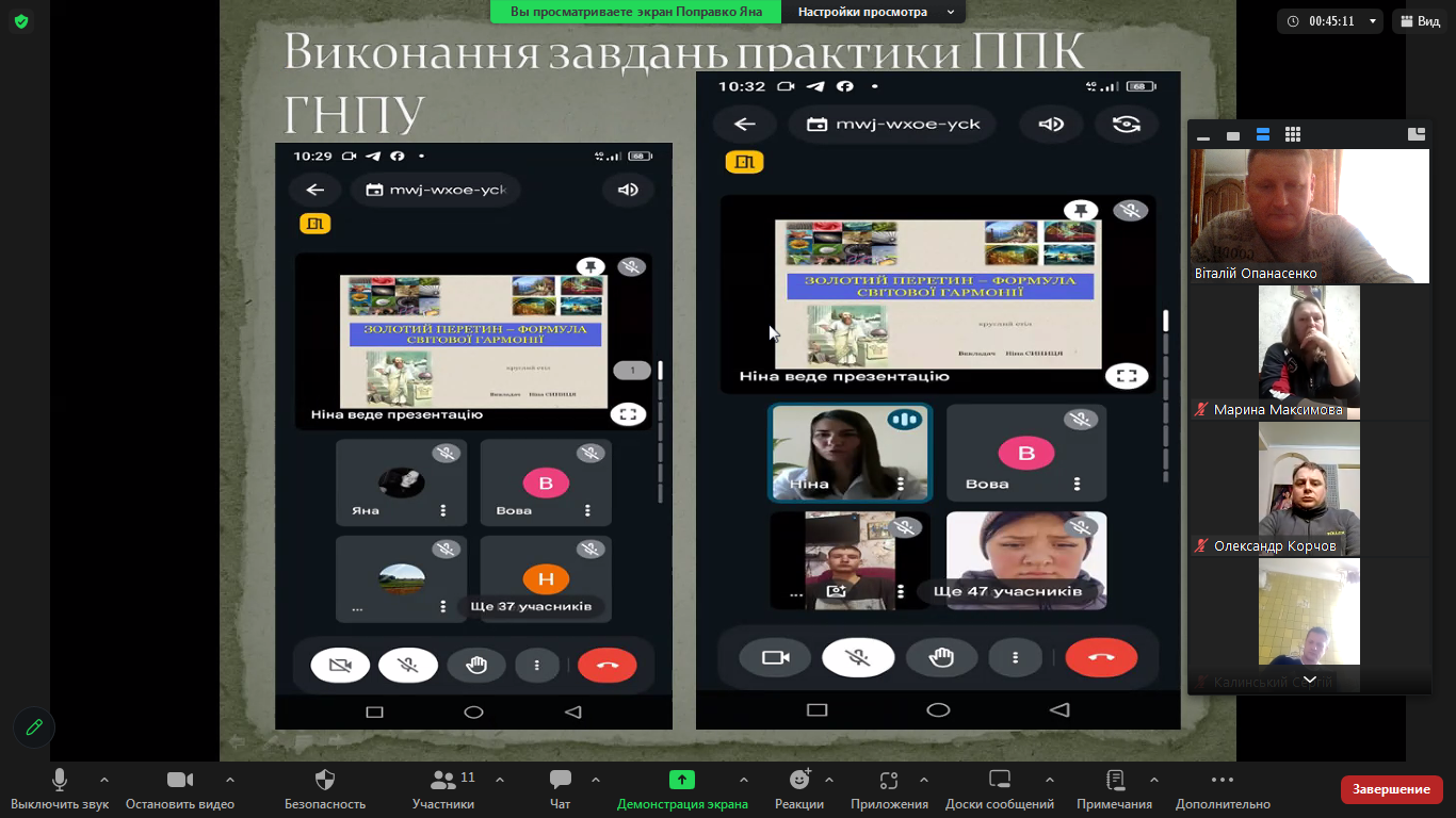 У роботі конференцій взяли участь групові керівники та методисти від кафедри професійної освіти та технологій сільськогосподарського виробництва (зав. кафедри, доц. Самусь Т.В., проф. доц. Вовк Б.І., доц. Опанасенко В.П., доц. Маринченко Є.О.) та консультант із психології Рябко Ю.В., яким здобувачі освіти представили доповіді й презентації проведених занять, виховних заходів, фото та відеоматеріали. Студенти продемонстрували належний рівень своєї теоретико-методичної підготовки, поділились враженнями від роботи в закладах професійної (професійно-технічної) та фахової передвищої освіти в умовах воєнного стану, розповіли про труднощі, що виникли у процесі проходження практик.