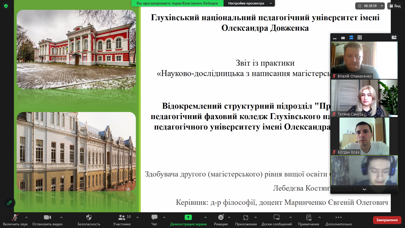 Під час захисту практики магістранти висвітлили у своїх доповідях результати своєї експериментальної роботи, індивідуальних завдань, які були поставлені груповими керівниками практики, впровадження розроблених методик, які використовувались у процесі проведення різних видів занять та апробації свого дослідження.