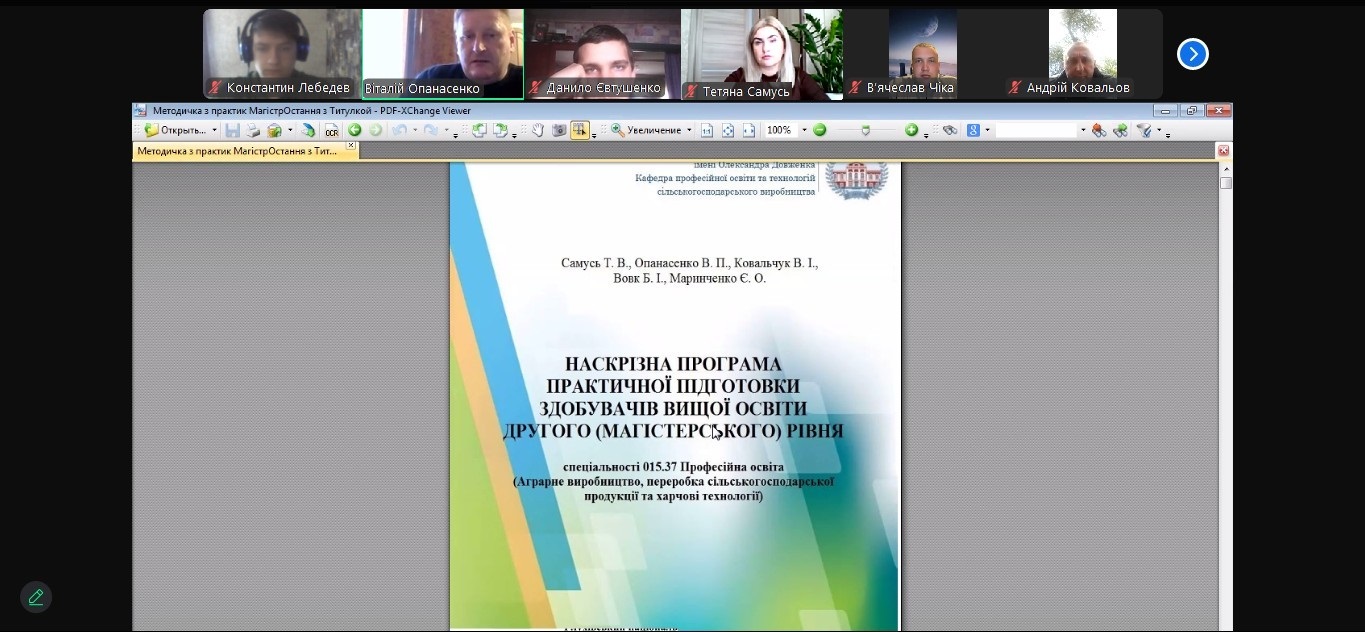 На кафедрі професійної освіти та технологій сільськогосподарського виробництва 01 жовтня відбулась запланована настановна конференція (у дистанційній формі з використанням платформи Zoom) з педагогічної практики на місці викладача для студентів 62М-Пр(М) групи, спеціальності А5 Професійна освіта (Аграрне виробництво, переробка сільськогосподарської продукції та харчові технології), які здобувають освіту за ОПП «Професійна освіта (Аграрне виробництво, переробка сільськогосподарської продукції та харчові технології)» другого магістерського рівня.