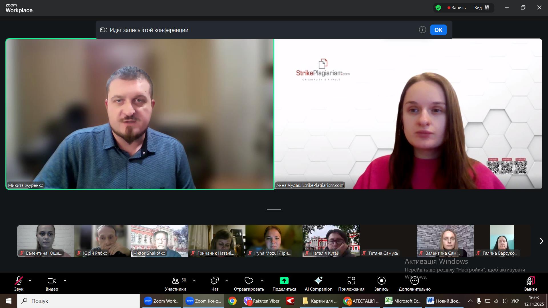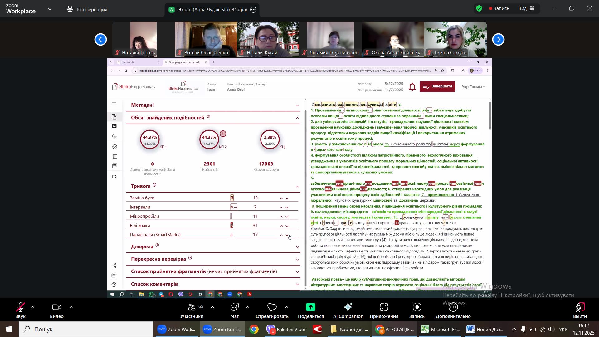 12 листопада 2025 року викладачі та аспіранти кафедри професійної освіти та технологій сільськогосподарського виробництва доєднались до онлайн-воркшоп «Новації у програмі StrikePlagiarism: нові можливості для перевірки робіт на плагіат у 2025 році». Спікеркою заходу виступила менеджерка з розвитку StrikePlagiarism в Україні Анна Чудак.
