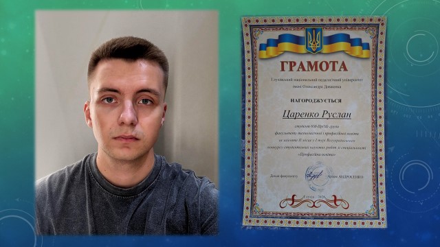 - Токмаков Антон Володимирович, здобувач 2 курсу 25-Пр(М) групи. Науковий керівник – Самусь Тетяна Володимирівна.