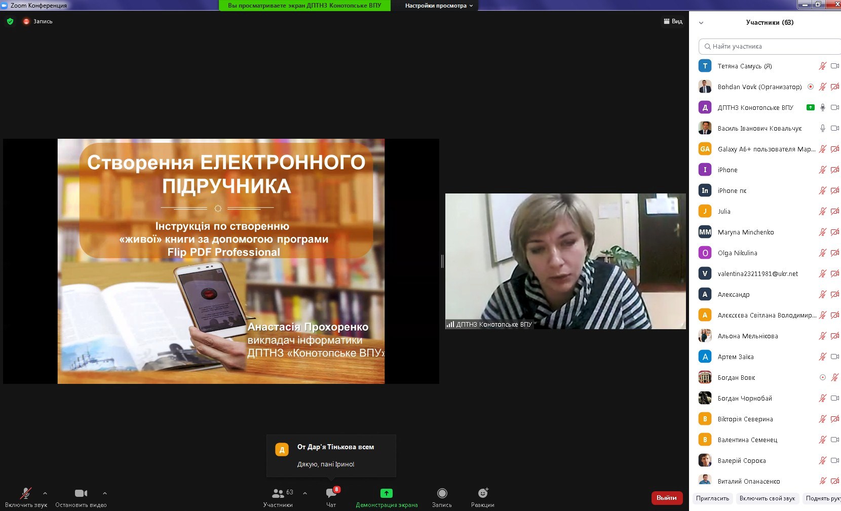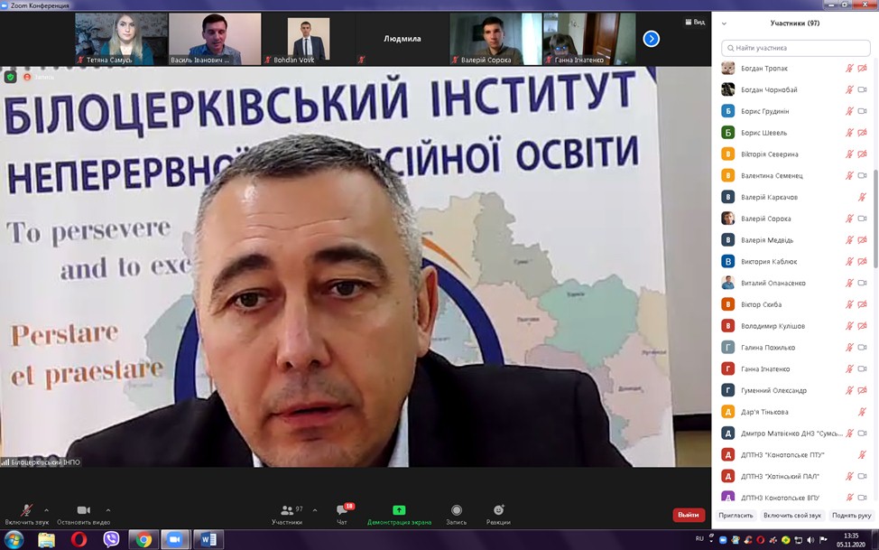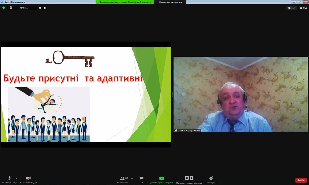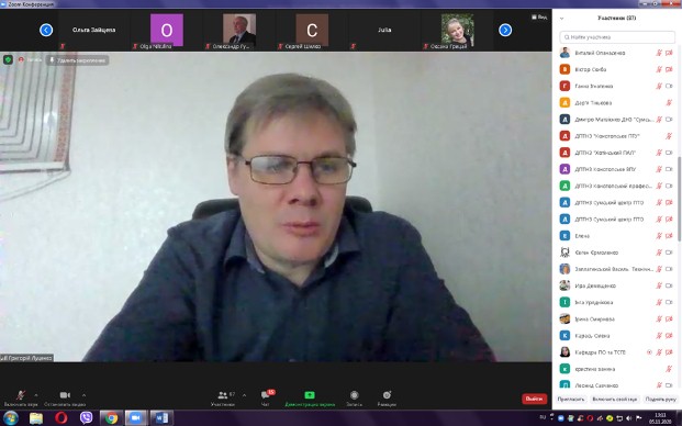 Цікавим був виступ Гуменного Олександра Дмитровича, кандидата педагогічних наук, доцента кафедри професійної та вищої освіти Центрального інституту післядипломної освіти ДЗВО «Університет менеджменту освіти» на тему «Ефективне використання відкритих онлайн-ресурсів у післядипломній освіті». Він розповів про особливості створення та застосування відкритих онлайн-ресурсів у післядипломній освіті, представив десять найкращих практик ефективної роботи педагогічних працівників в інтернеті, серед яких: «Будьте присутніми і адаптивними», «Установіть очікування, пропонуйте студентам виконувати прикладні завдання», «Виховуйте, підтримуючи інтернет-спільноту», «Подумайте, перш ніж написати текстове завдання», «Попросіть відгук», «Удосконалюйте особисті стосунки з кожним студентом», «Використовуйте групові та індивідуальні проєкти», «Використовуйте доступні ресурси», «Займіться завершальною діяльністю».