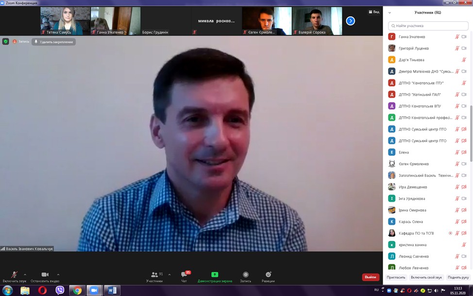 Ідейним натхненником і модератором проведення цьогорічного науково-методичного семінару став доктор педагогічних наук, професор, завідувач кафедри професійної освіти та технологій сільськогосподарського виробництва Василь Іванович Ковальчук. На початку форуму він представив організаторів та наукових партнерів, які долучилися до його проведення. Це Навчально-методичний центр професійно-технічної освіти у Сумській області; Інститут професійно-технічної освіти НАПН України; ДЗВО «Університет менеджменту освіти» НАПН України (Білоцерківський інститут неперервної професійної освіти; кафедра професійної і вищої освіти Центрального інституту післядипломної педагогічної освіти); Чернівецький національний університет імені Юрія Федьковича (кафедра професійної та технологічної освіти і загальної фізики Інституту фізико-технічних та комп’ютерних наук); Криворізький державний педагогічний університет (кафедра загальнотехнічних дисциплін та професійного навчання); професійно-педагогічний фаховий коледж Глухівського національного педагогічного університету імені Олександра Довженка.