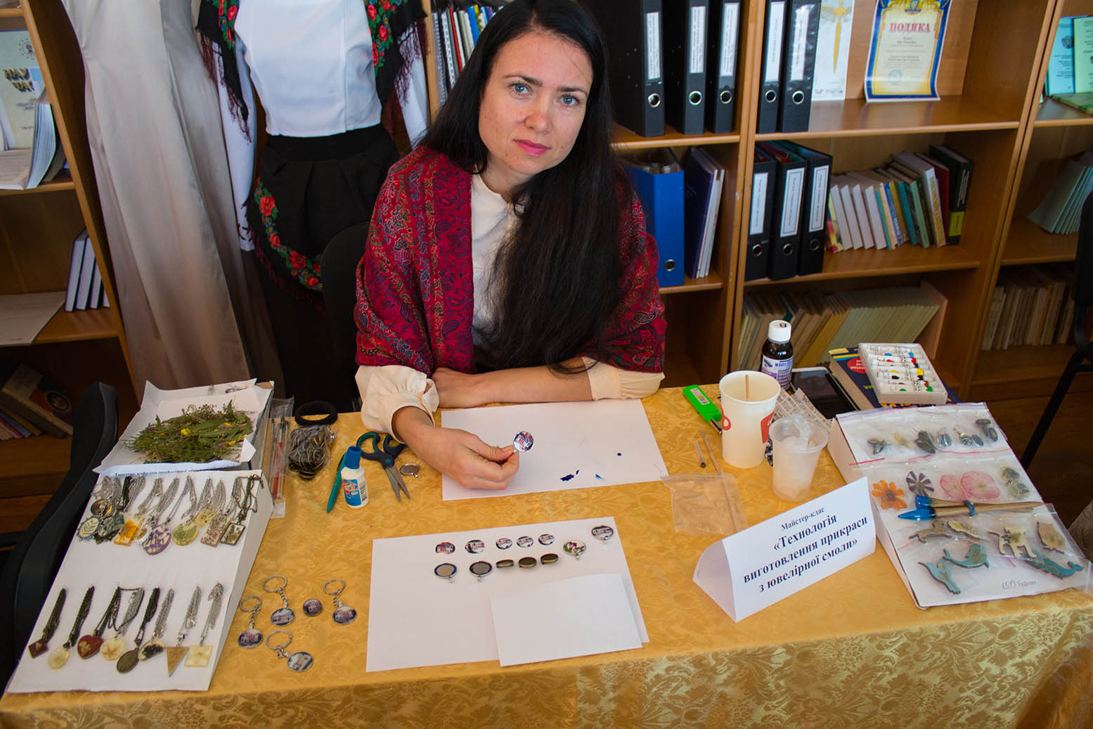 Також у всіх учасників семінару була можливість опанувати технологію виготовлення виробів для оздоблення інтер’єру технікою «Кінусайга (печворк без голки)», технологією виготовлення прикрас з ювелірної смоли та технологію виготовлення штучних квітів у виконанні викладачів та студентів факультету.