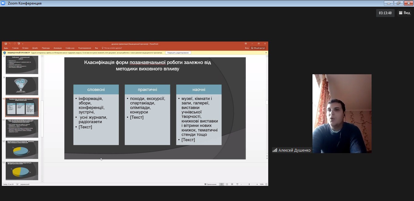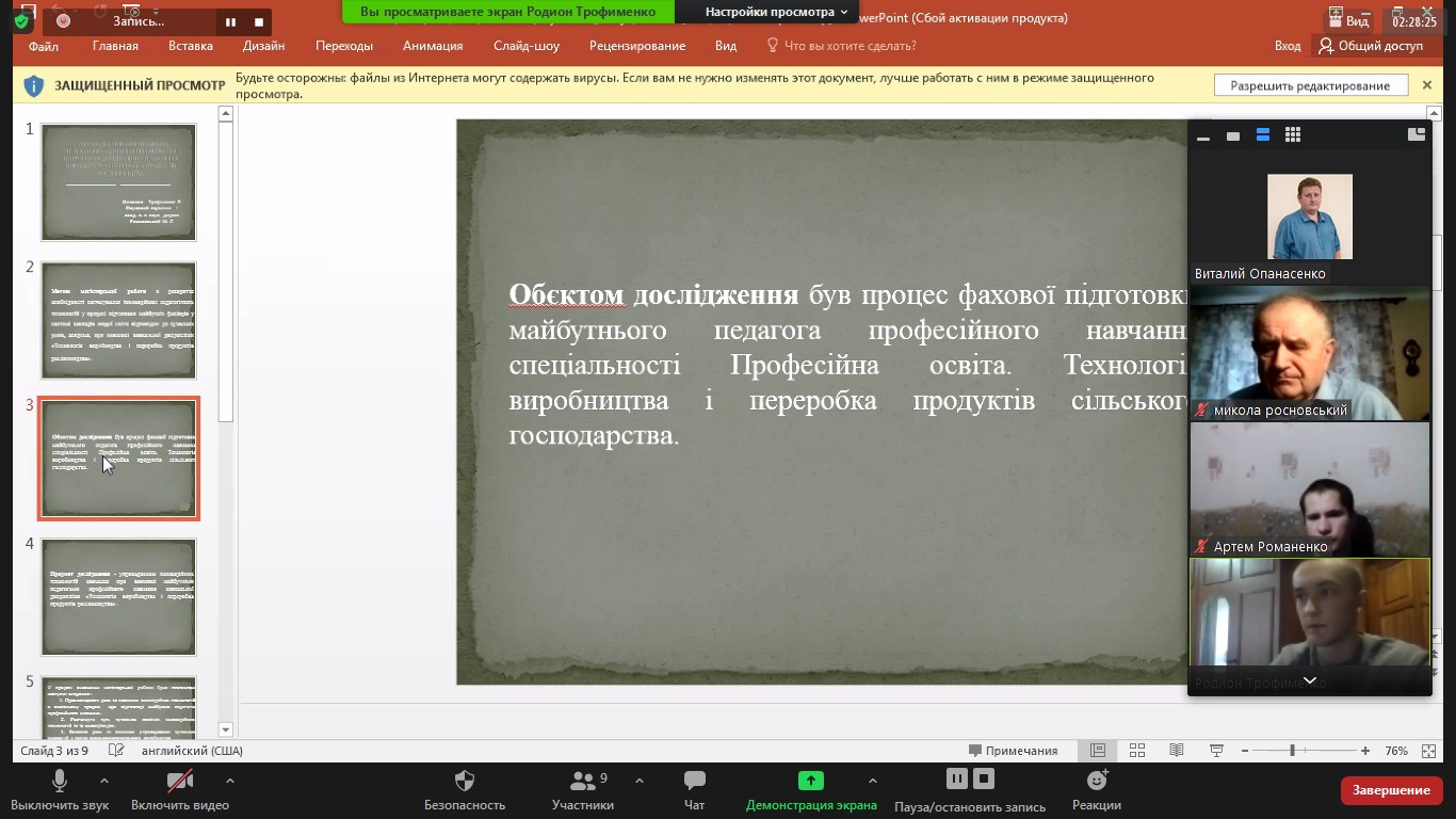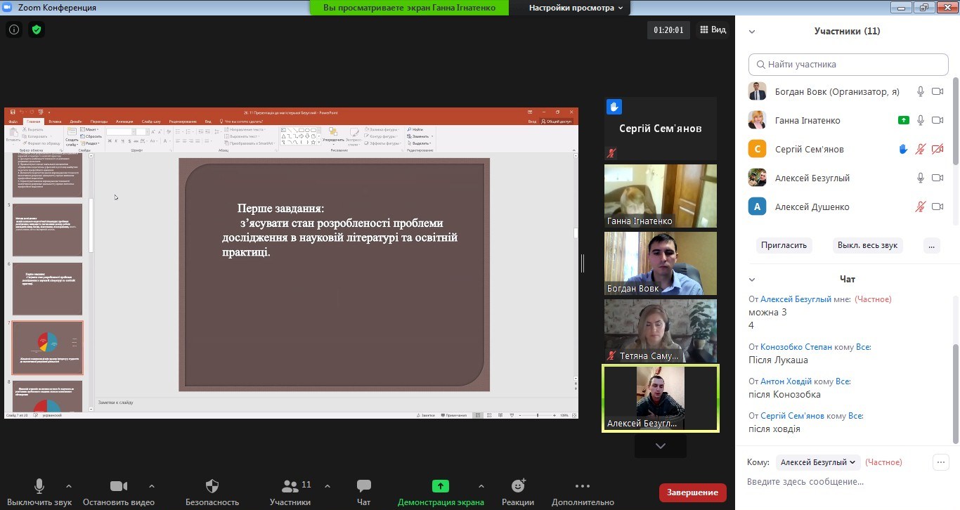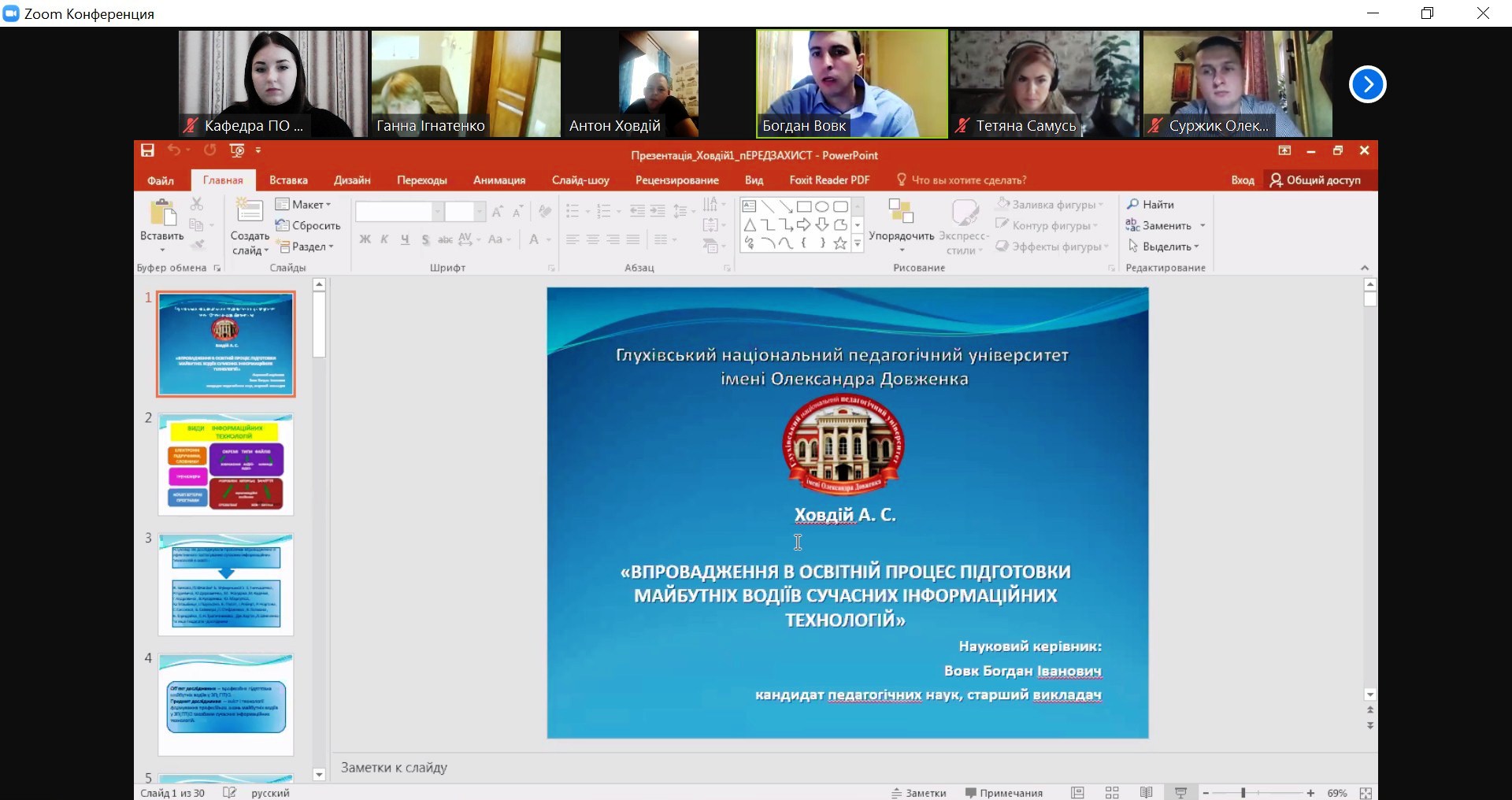 27 листопада 2020 року на кафедрі професійної освіти та технологій сільськогосподарського виробництва в режимі онлайн відбувся попередній захист випускної кваліфікаційної роботи магістрантів другого року навчання за спеціальністю: 015 Професійна освіта (Технологія виробництва і переробки продуктів сільського господарства).