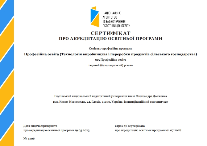 ТА ТЕХНОЛОГІЙ СІЛЬСЬКОГОСПОДАРСЬКОГО ВИРОБНИЦТВА