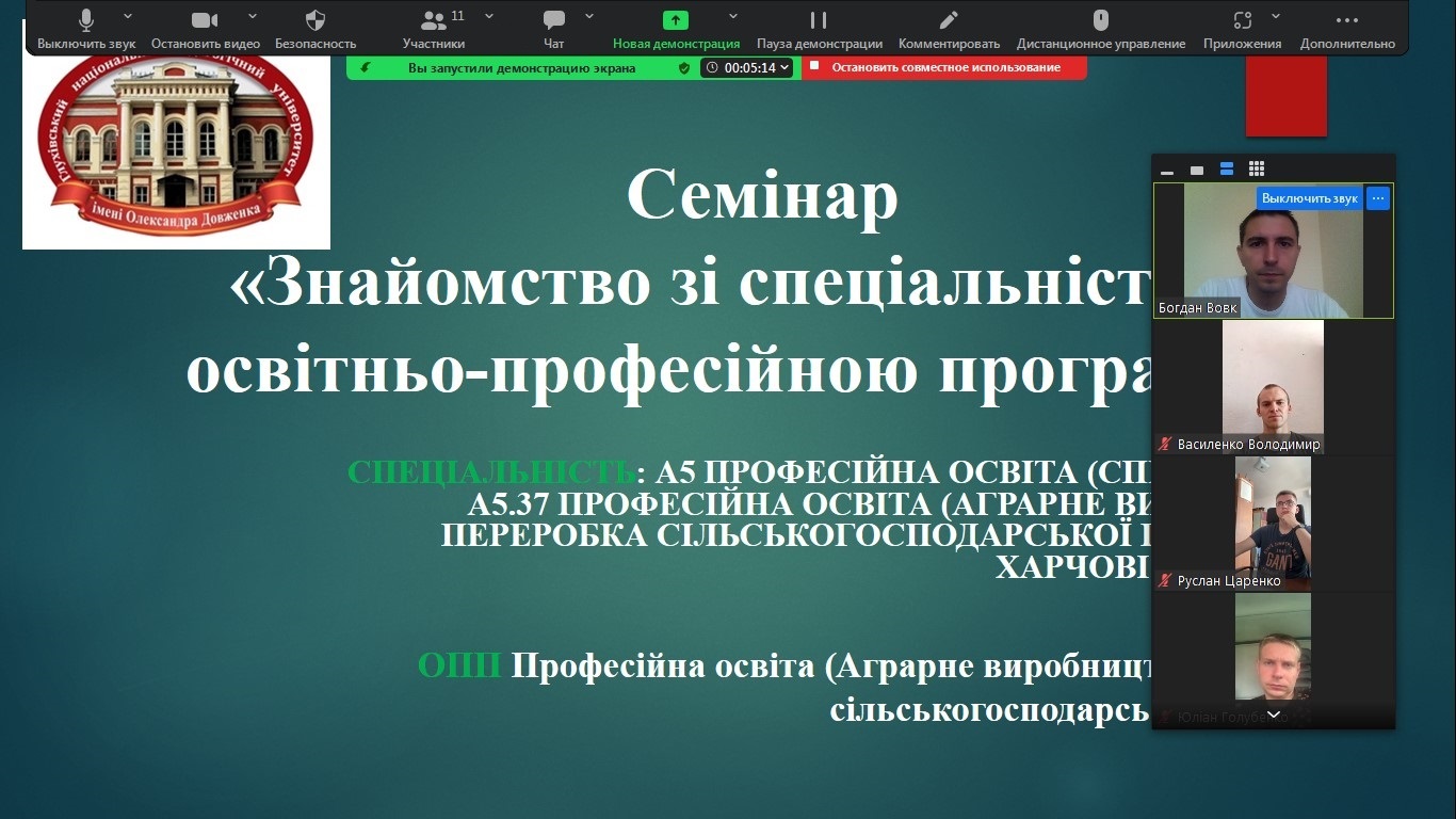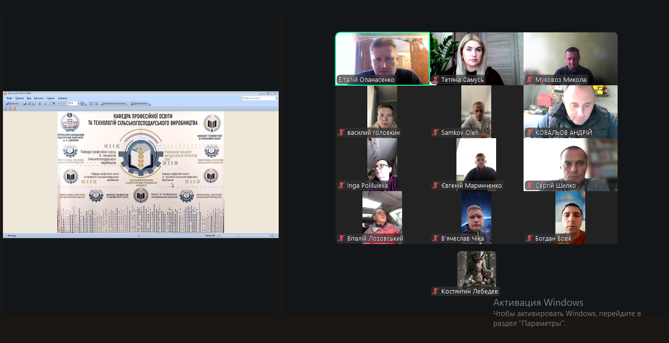 На кафедрі професійної освіти та технологій сільськогосподарського виробництва 01 жовтня відбулась запланована настановна конференція (у дистанційній формі з використанням платформи Zoom) з педагогічної практики на місці викладача для студентів 62М-Пр(М) групи, спеціальності А5 Професійна освіта (Аграрне виробництво, переробка сільськогосподарської продукції та харчові технології), які здобувають освіту за ОПП «Професійна освіта (Аграрне виробництво, переробка сільськогосподарської продукції та харчові технології)» другого магістерського рівня.
