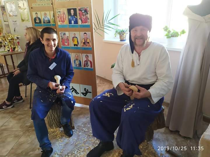 Вирізання ложки - Заслужений Народний майстр України Білевич Ігор Володимирович та Завгородній Сергій (62 МТ).