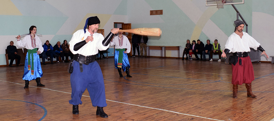 Розпочалося спортивно-культурне свято «Козацькі забави» із майстер-класу від клубу «Гарда» з використання козацької зброї під керівництвом Білевича Ігора та Дзекелева Романа.