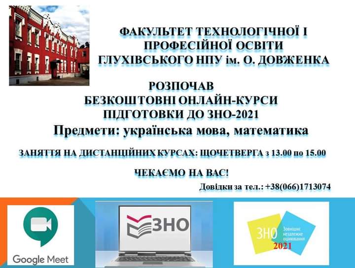Глухівський національний педагогічний університет імені Олександра Довженка запрошує вступників 2021 року взяти участь у першому (дистанційному) турі Всеукраїнських олімпіад з біології, математики, фізики, історії України, української мови, який триватиме з 1 лютого по 26 березня 2021 р.