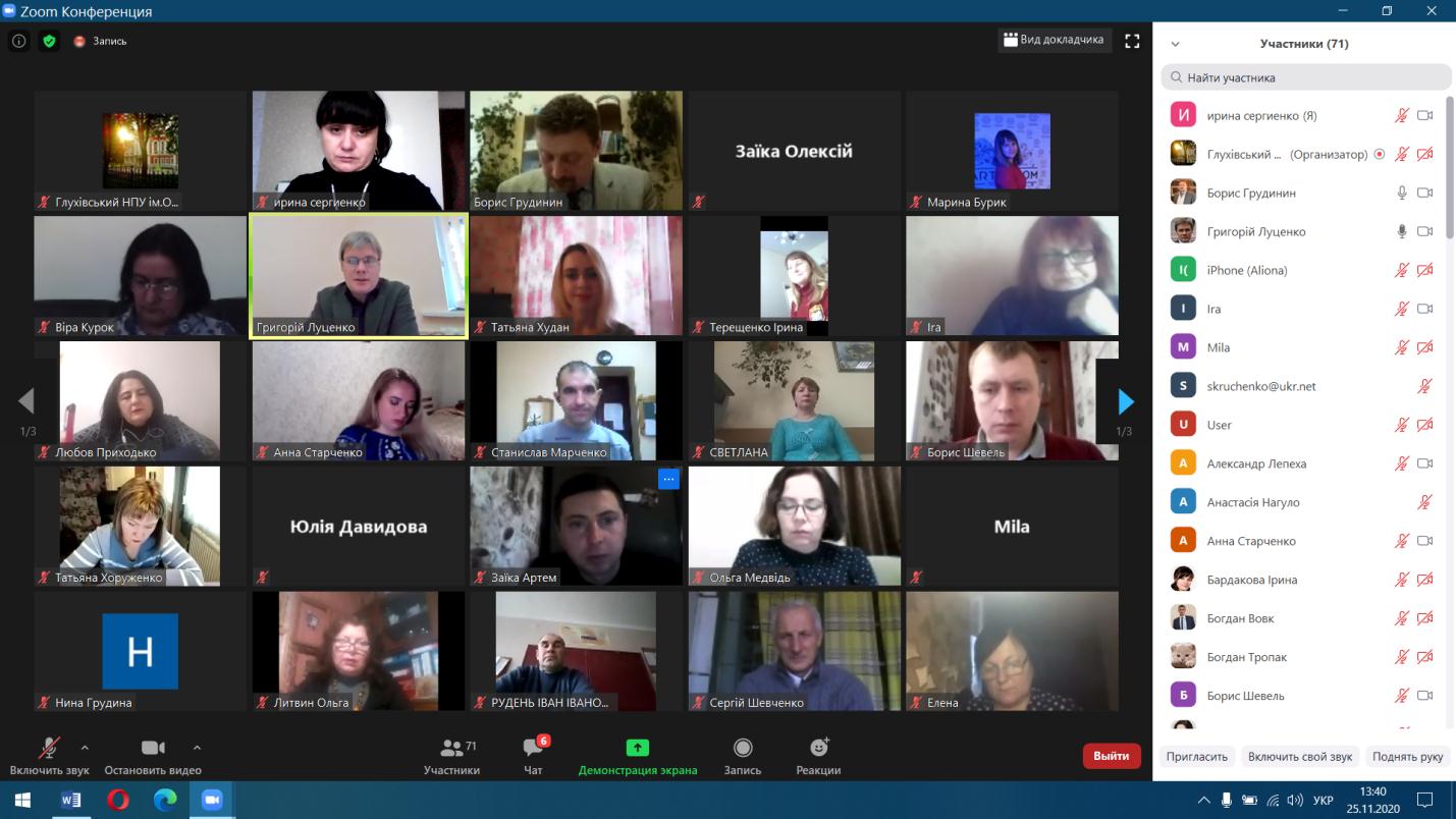 25 листопада 2020 року на базі Глухівського національного педагогічного університету імені Олександра Довженка зусиллями викладачів кафедри технологічної та професійної освіти відбувся традиційний регіональний науково-методичний семінар «Технологічна освіта в контексті концептуальних засад Нової української школи» в онлайн-форматі на платформі Zoom.