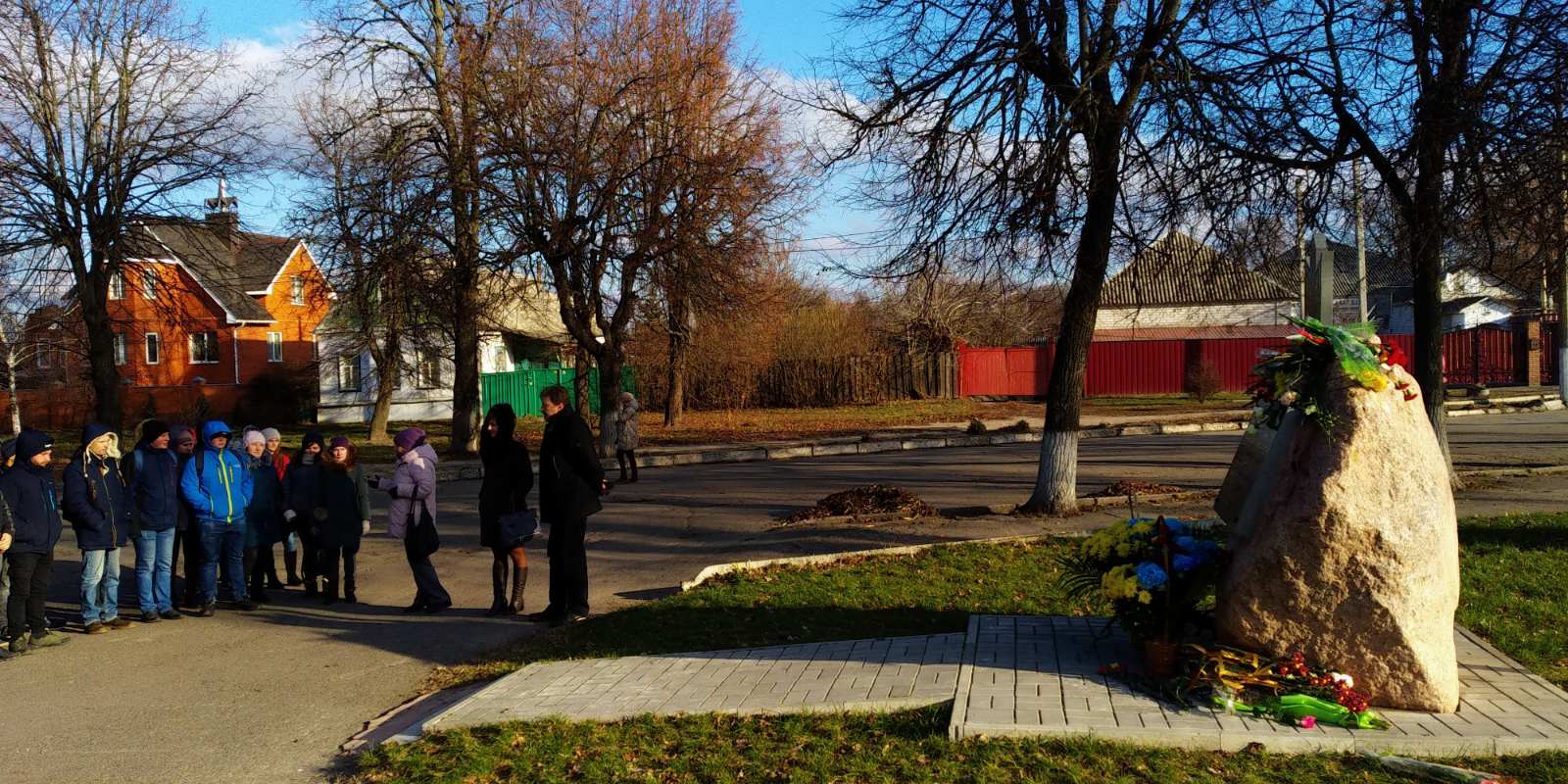 Учасники заходу поклали квіти до меморіалу та мовчки вшанували загиблих. У процесі жалобної церемонії присутні зазначили: “пам’ять про цих Героїв потрібна не мертвим – вона потрібна нам, живим, аби ми не забували, заради чого сини України поклали свої життя заради розбудови нашої неньки України”.